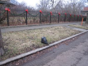 Today’s Pic of the day: GARBAGE! What?!? Elgin, IL is a dying city. Our house is surrounded by churches and low income housing, so there is quite a bit of foot traffic and LOTS of littering. This bag of trash was left on the parkway, on the side of our house, Thanksgiving weekend. I decided to see how long it sits there before: a) the city removes it (the parkway IS their property); b) someone rips it open to see if there is anything good inside; or, c) a Good Samaritan carries it away to dispose of it. Status: 6 weeks and counting.