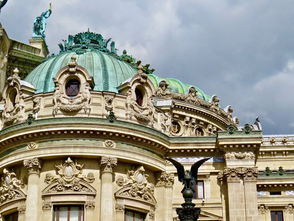After checking with the desk, we had a little time before our room would be ready, so we went for a walk through the neighborhood– part of the 9th arrondissement. Just down the block from our hotel was the Palais Garnier. It’s consider one of, if not the most famous opera house in the world.